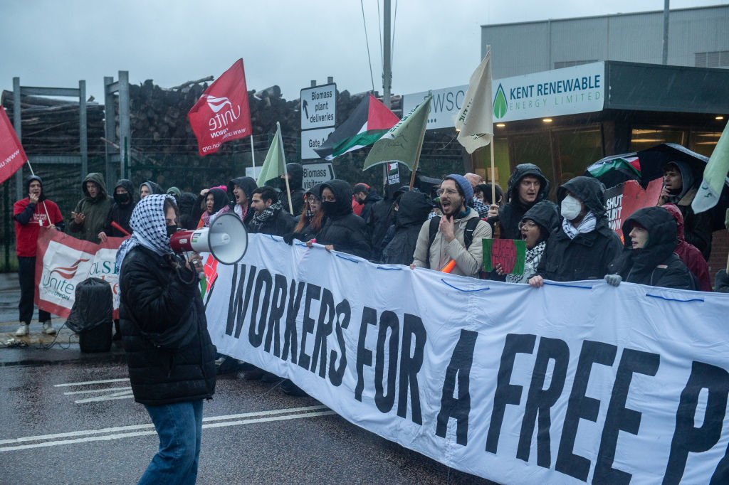 지난 10월 26일, 이스라엘 무기 기업 앞에서 시위를 벌이는 영국 노동자들ⓒ 소셜미디어 X 남아공 정부의 ICJ 제소