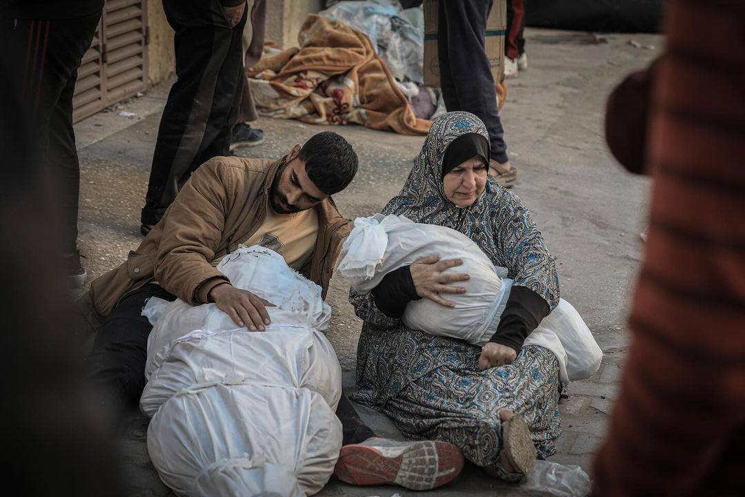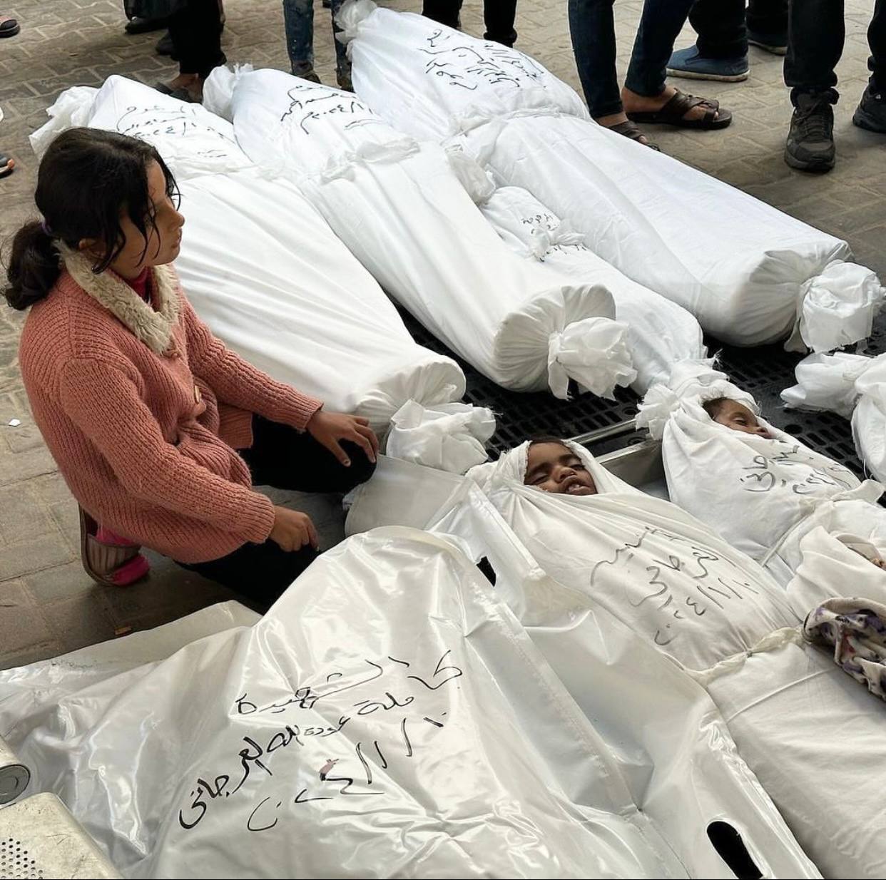 012023년 12월 이스라엘 공습으로 사망한 동생의 시신 앞에 앉은 소녀와 2024년 2월 19일 이스라엘의 공습으로 사망한 아이들에게 작별을 고하는 아빠와 엄마ⓒ 텔레그램 Eye on Palestine 채널 전 세계적인 반전평화 운동